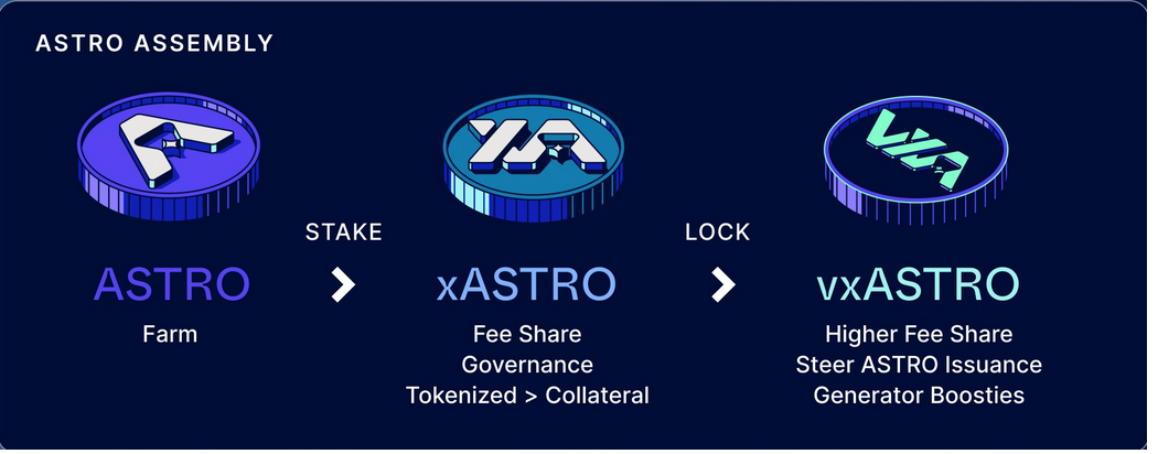 - xASTRO holders may then lock their xASTRO in the vxASTRO pool to receive vxASTRO points, amplifying their governance power & receiving an additional share of trading fees. vxASTRO is inspired by @CurveFinance's impressive VeCRV model.