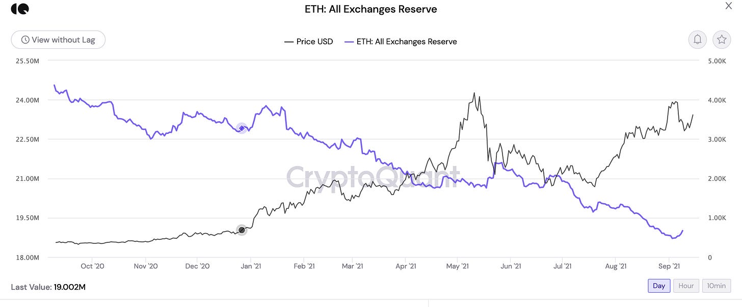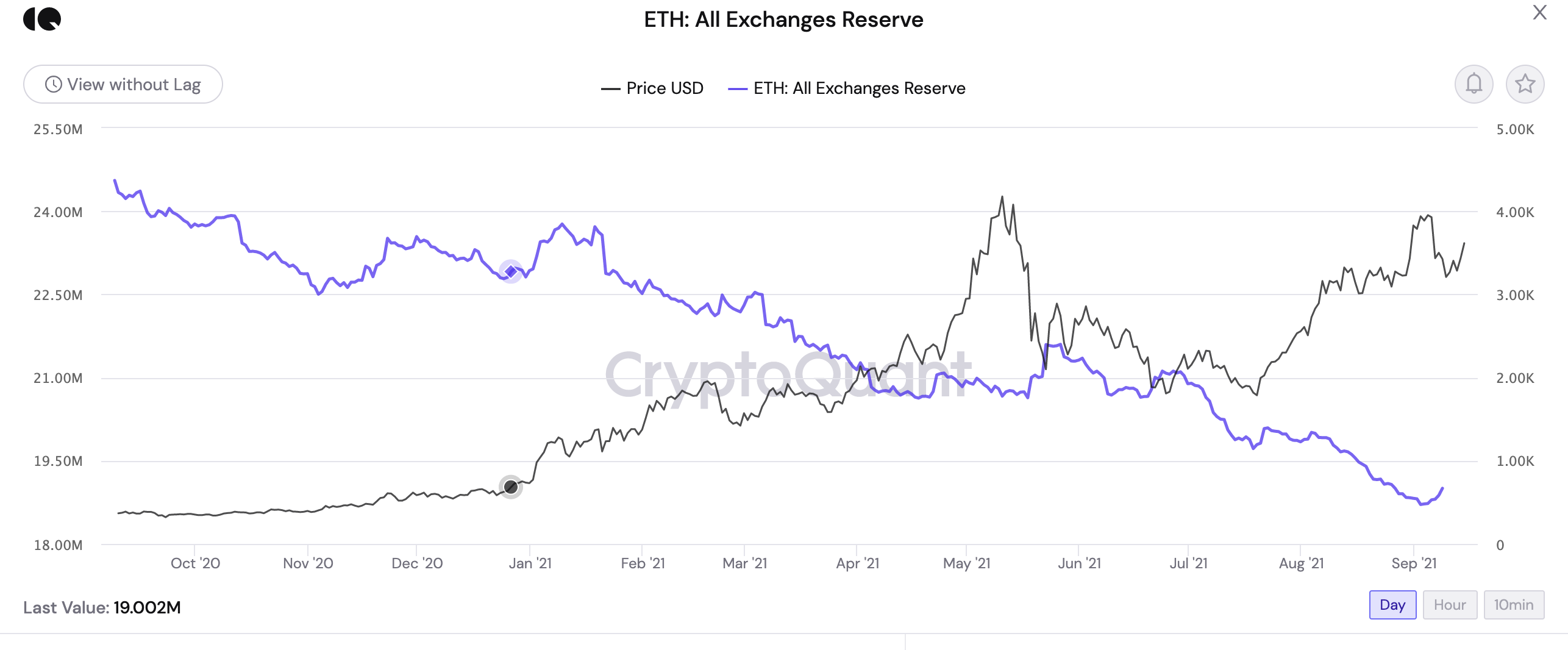ETH being burned and lots of ETH is being staked in Eth 2.0 contract is causing change in supply inflow, this is an indication that supply of coins is really starting to dry up, This supply squeeze on exchanges is extremely bullish for ethereum.
